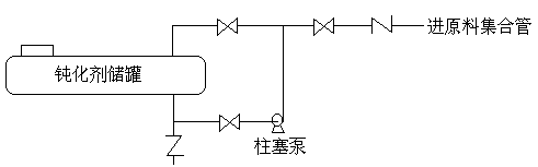 鈍化劑用儲(chǔ)罐儲(chǔ)存,加入泵為柱塞泵。鈍化劑直接加入到進(jìn)料集合管上。為檢查是否上量,集合管前有一放空閥。